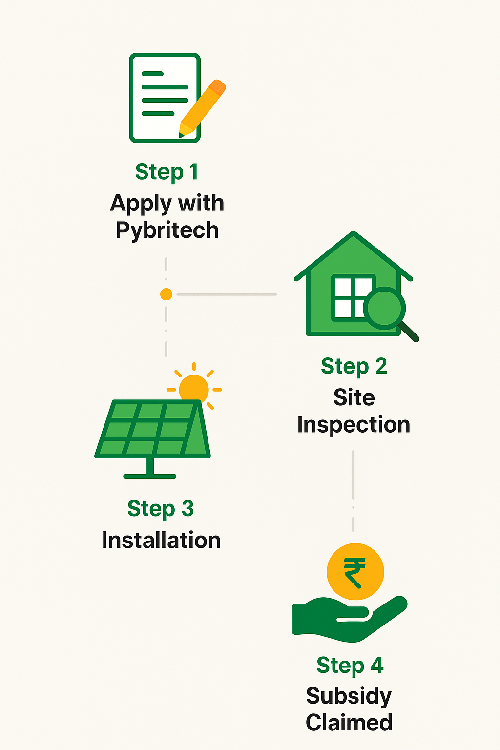 Pybritech Solar helps you claim government subsidies under MNREβs Rooftop Solar Program.